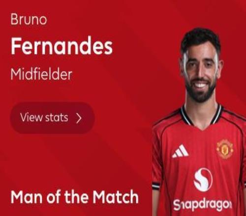 最終經(jīng)過英超官網(wǎng)球迷投票,布魯諾-費(fèi)爾南德斯當(dāng)選全場最佳球員。
