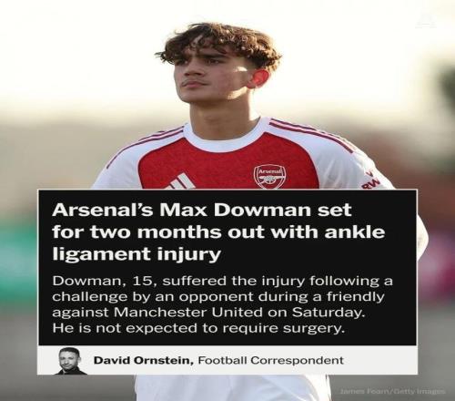 本賽季,15歲的青訓(xùn)天才道曼升入阿森納一線隊(duì),在英超和歐冠中大放異彩,成為歐冠歷史上最年輕的出場球員。本賽季至今,道曼共代表阿森納一線隊(duì)出戰(zhàn)5次,其中1次首發(fā),斬獲1次助攻。然而,上周末代表阿森納U21出戰(zhàn)對陣曼聯(lián)的友誼賽時,道曼遭遇一次惡劣犯規(guī),預(yù)計將休戰(zhàn)約兩個月,這對主帥阿爾特塔無疑是個打擊。
